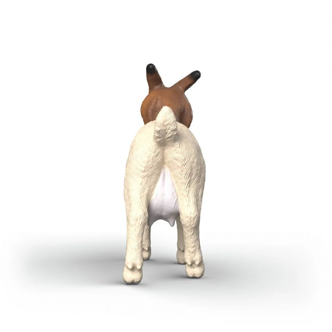 Burgeita har tett, hvit pels og et karakteristisk brunt hode med lange, hengende ører. Halsen er også brun. Den robuste burggeita trives i all slags vær – enten det er varmt eller kaldt. Dette, sammen med dens nysgjerrige natur, gjør den til en enkel og populær beboer på gården.