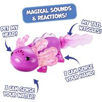 Ziggy, den søte, interaktive axolotlen, svømmer og lyser opp i vannet. Se henne svømme rundt i en bolle, et akvarium eller et basseng (ikke inkludert)! Ziggy er magentarosa med glitrende gjeller som lyser i regnbuens farger.