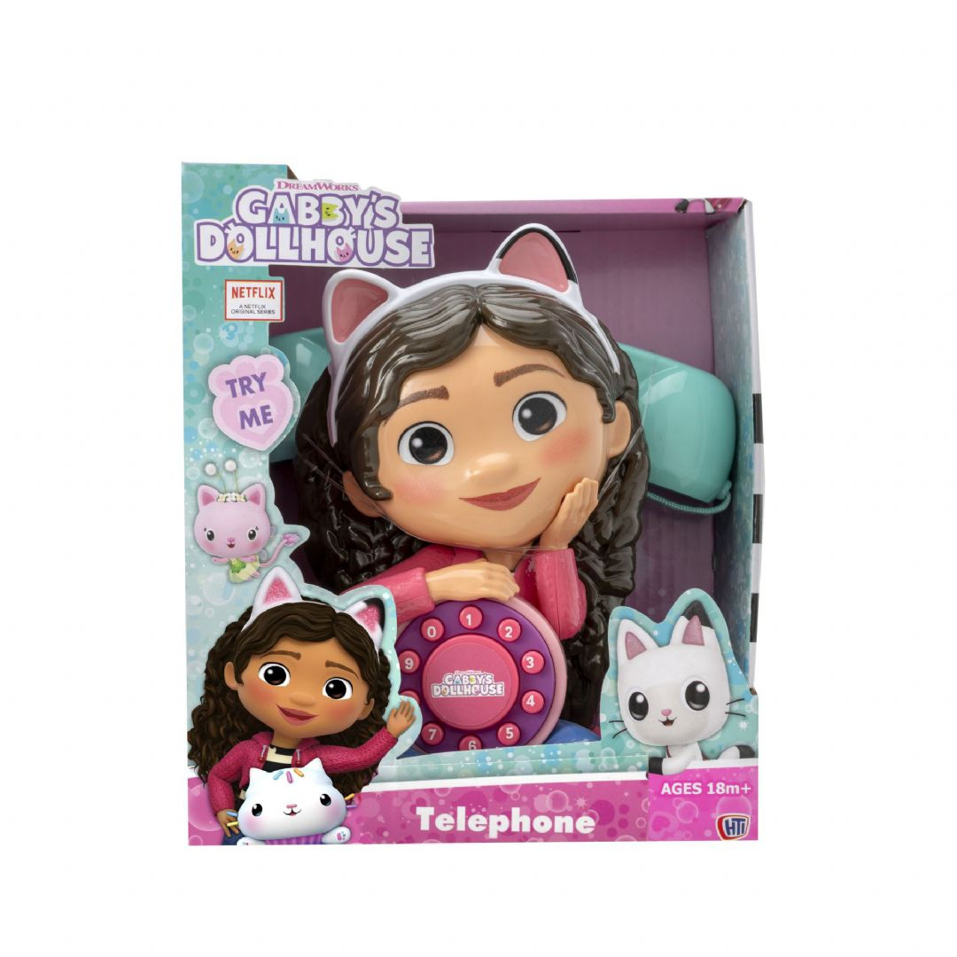 Denne fargerike telefonen er formet som Gabby selv, og er full av morsomme lyder og overraskelser som vil glede små fans av Gabbys dukkehus.