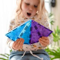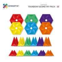 Legg til fargerike regnbuesekskanter og trekanter til samlingen din og opplev gleden ved å lage mønstre, pyramider, pizzaer og mandalaer. Connetix Geometry Pack - magnetsett 30 deler - regnbue er perfekt for å leke og lære om former, geometri og generell matematisk forståelse. Connetix-leker tilpasser seg og vokser med barnet ditt, og gir mer kompleks lek etter hvert som de lærer.