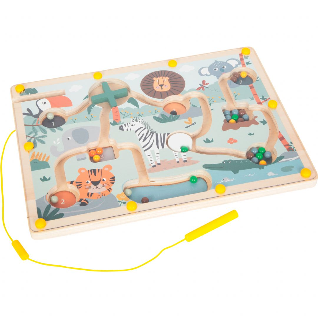 Magnetisk trelabyrintspill med safaritema