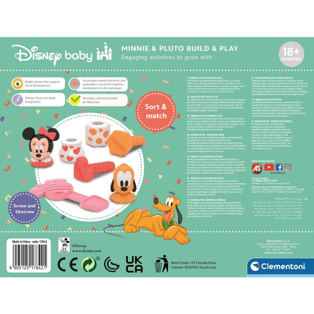 En original byggelek for å sette sammen Minnie- og Pluto-figurene. Skrutrekkeren lar barnet utvikle sine manuelle ferdigheter. Bidrar til å utvikle viktige ferdigheter for barnets kognitive utvikling fra de tidligste årene. Montering og demontering av figurene for hånd eller med skrutrekker hjelper barnet med å utvikle finmotorikk. Farger og former stimulerer barnets visuelle persepsjon. Manuelle ferdigheter. Anbefales for barn over 18 måneder.