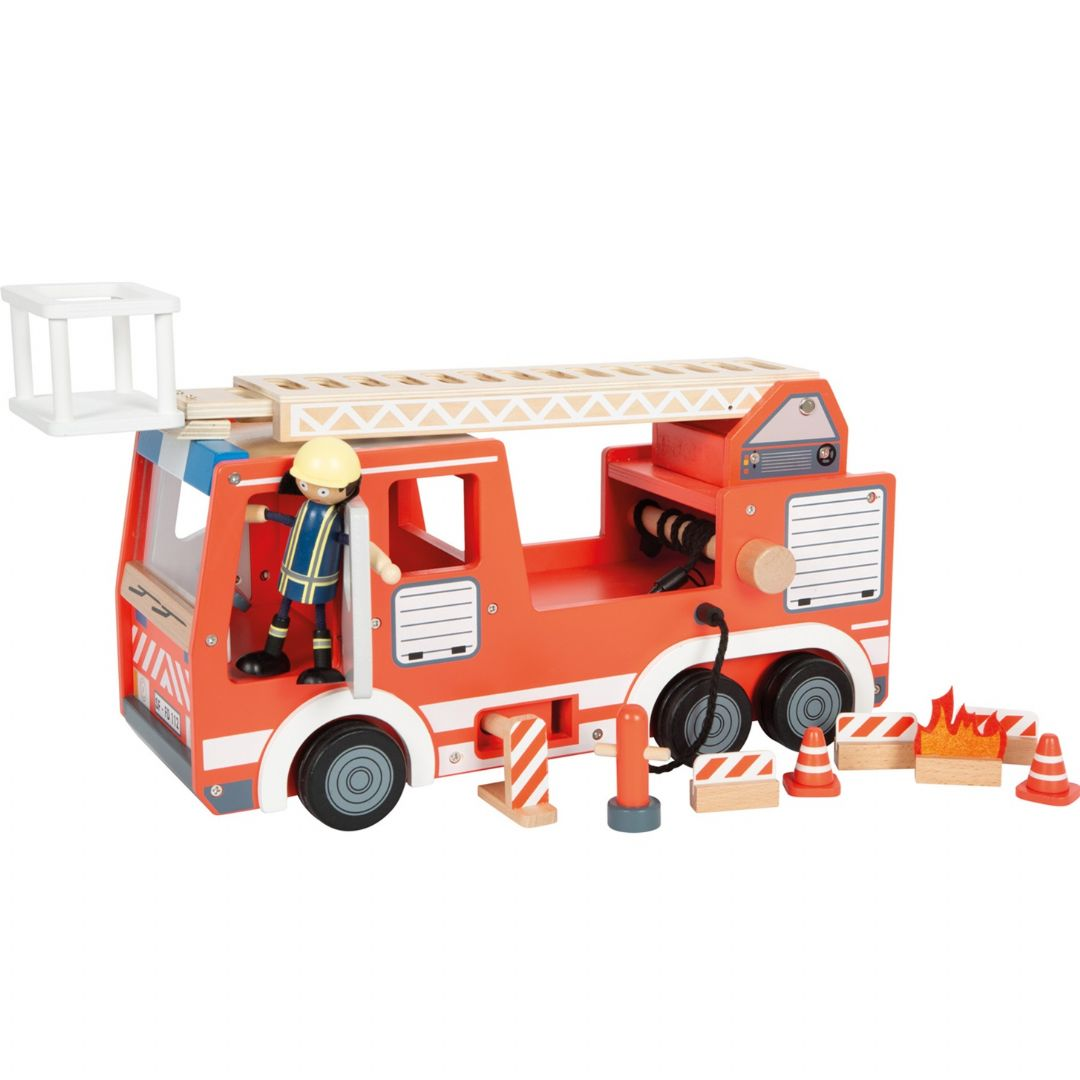 To klaffer gir oppbevaringsplass for alt utstyr, som barrierer, kjegler og annet tilbehør. Førerhuset med bevegelige dører har plass til den medfølgende brannmannsdukken med bøybare armer og ben. De gummibelagte hjulene gir stille og sikker kjøring til neste redningsoppdrag.