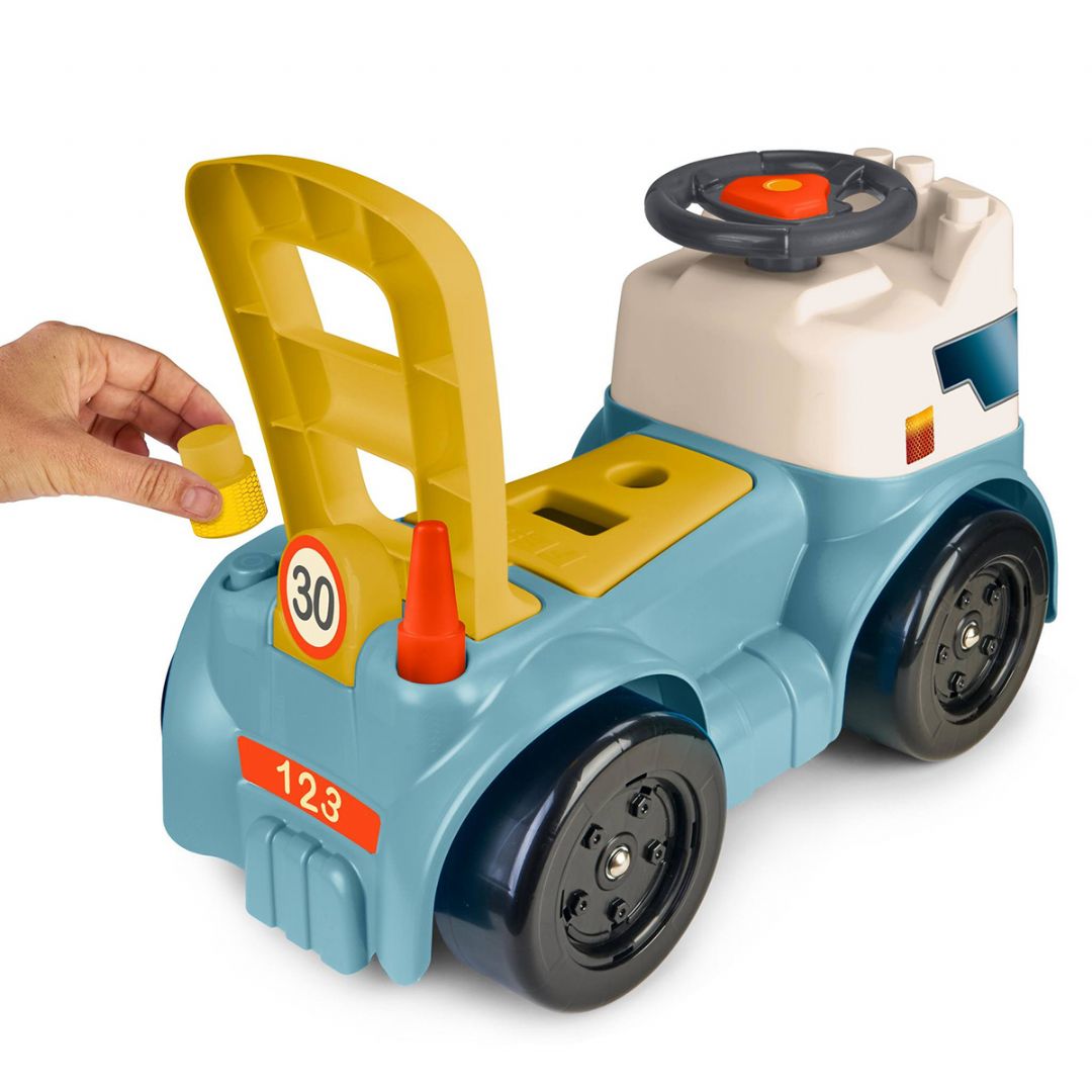 De medfølgende byggeklossene gir også barnet ditt muligheten til å leke kreativt, utvikle finmotorikk og lære om farger og former. Klossene kan oppbevares under setet for å holde leken organisert og praktisk.