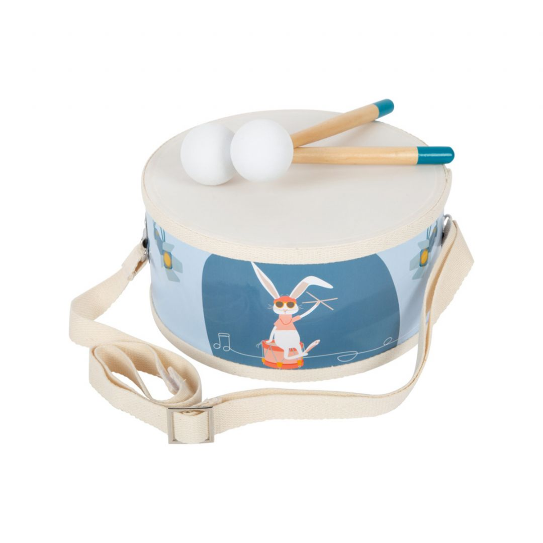 Alle unge, håpefulle trommeslagere vil være godt utstyrt med denne barnetrommen, for sammen med kaninen Heidi har den mye å tilby publikums ører! Trommens bomullsbelte kan justeres til hvilken som helst lengde uten hull via metallspennen. Og den er også praktisk: Det er lydabsorberende trekk til trommestikkene, slik at det ikke blir for høyt i barnehagen. Den er et absolutt blikkfang for barnehagebandet og en hit blant unge lydmakere! Denne barnetrommen trener lekent rytmesans og rytme, samt hånd-øye-koordinasjon. Den er ideell for tidlig musikalsk utdanning!